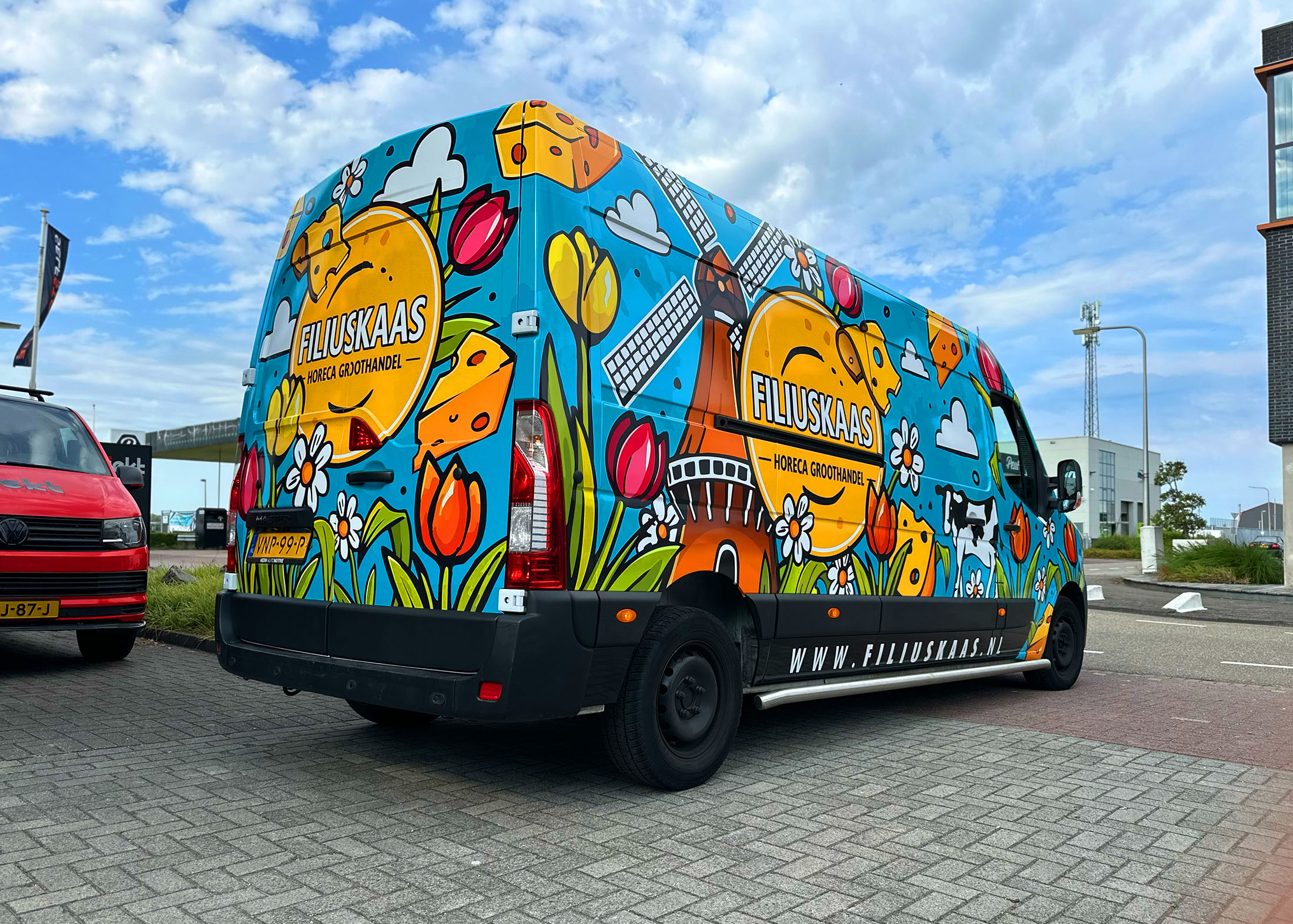 Voor mijn gewaardeerde klant Filiuskaas is een opvallende full wrap autobestickering ontworpen, welke meteen de aandacht trekt en bovendien de Hollandse roots benadrukt van het bedrijf. De opdracht was duidelijk: realiseer een creatieve en herkenbare bus die de aandacht van voorbijgangers trekt en daarnaast de merkidentiteit versterkt.